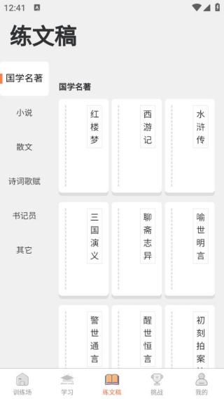 4、练文稿提供丰富多样的文字内容,您只需点击自己感兴趣的内容,直接进行输入操作即可。