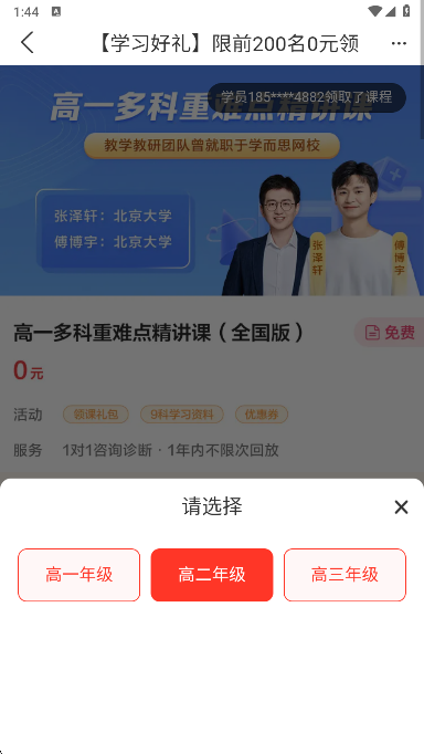 1、在本站完成安装并打开后,选择您当前的在读年级