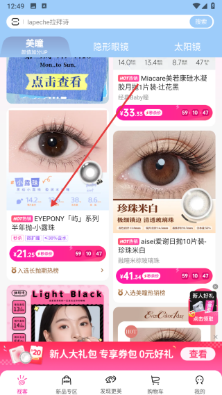 站内设有科普专区,指导如何正确选购及使用隐形眼镜