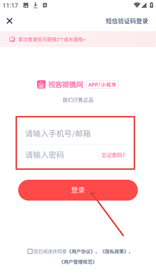 4、切换至该登录界面后,依次填写【请输入手机号/邮箱】【请输入密码】的信息,勾选相关协议后点击【登录】按钮,即可完成操作。