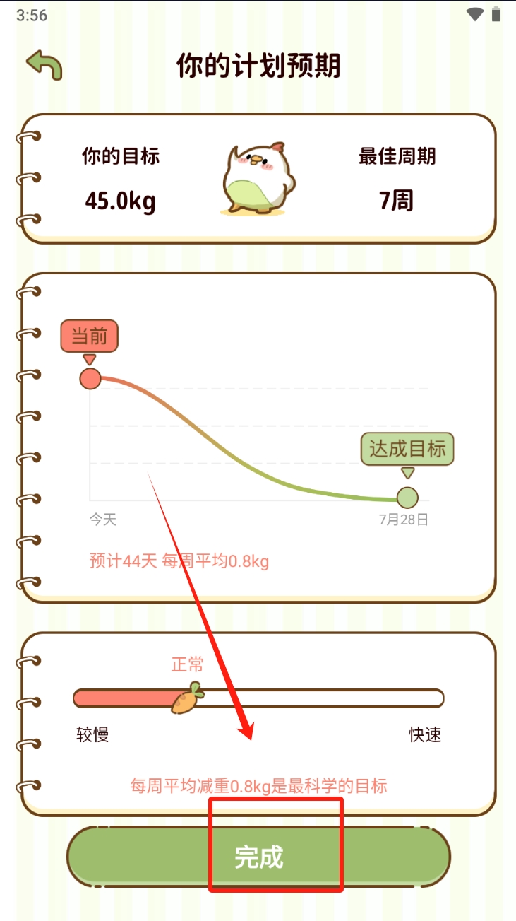 3、查看您的减脂计划预期,并点击“完成”开始计划。
