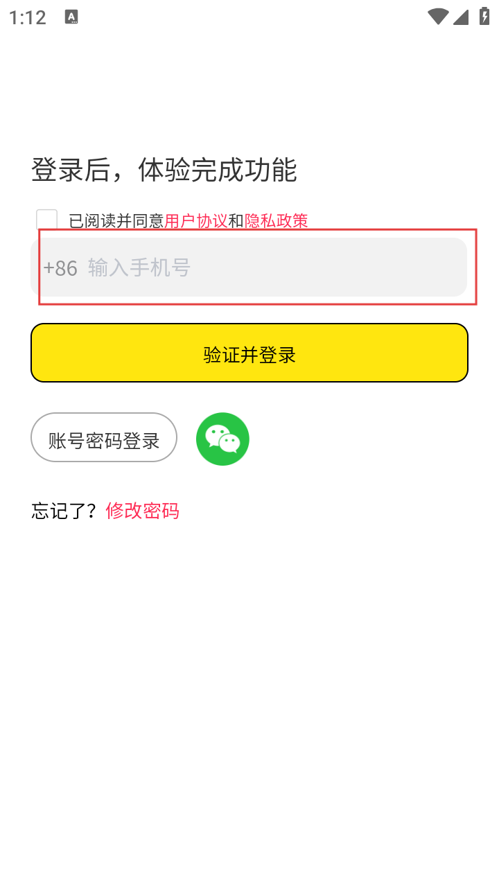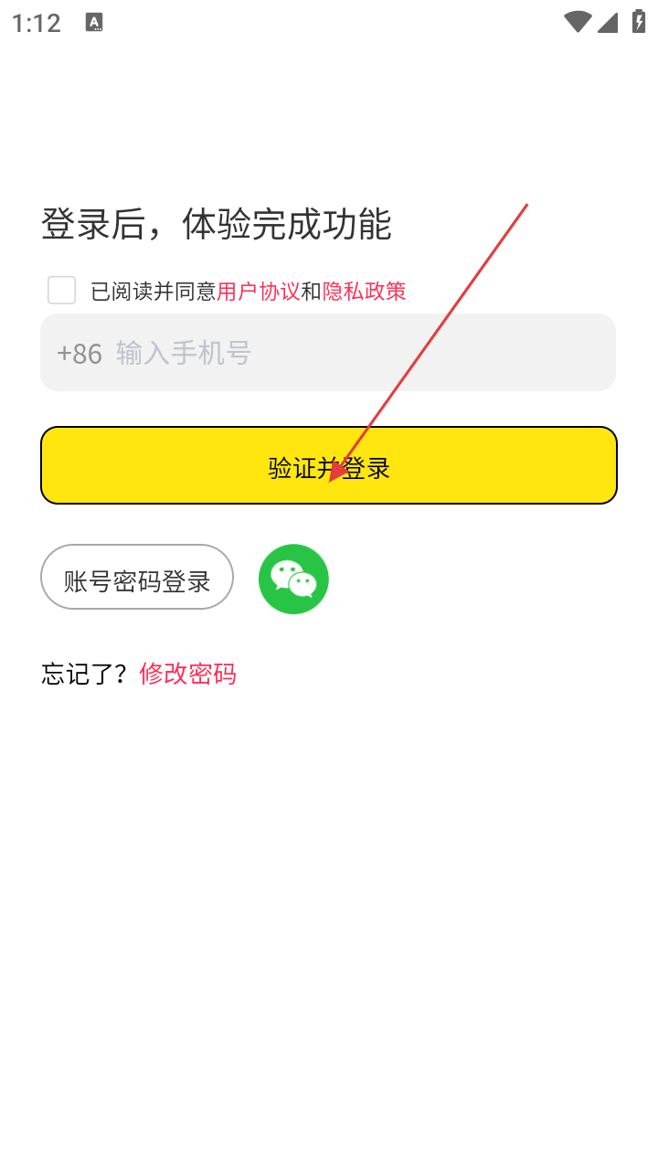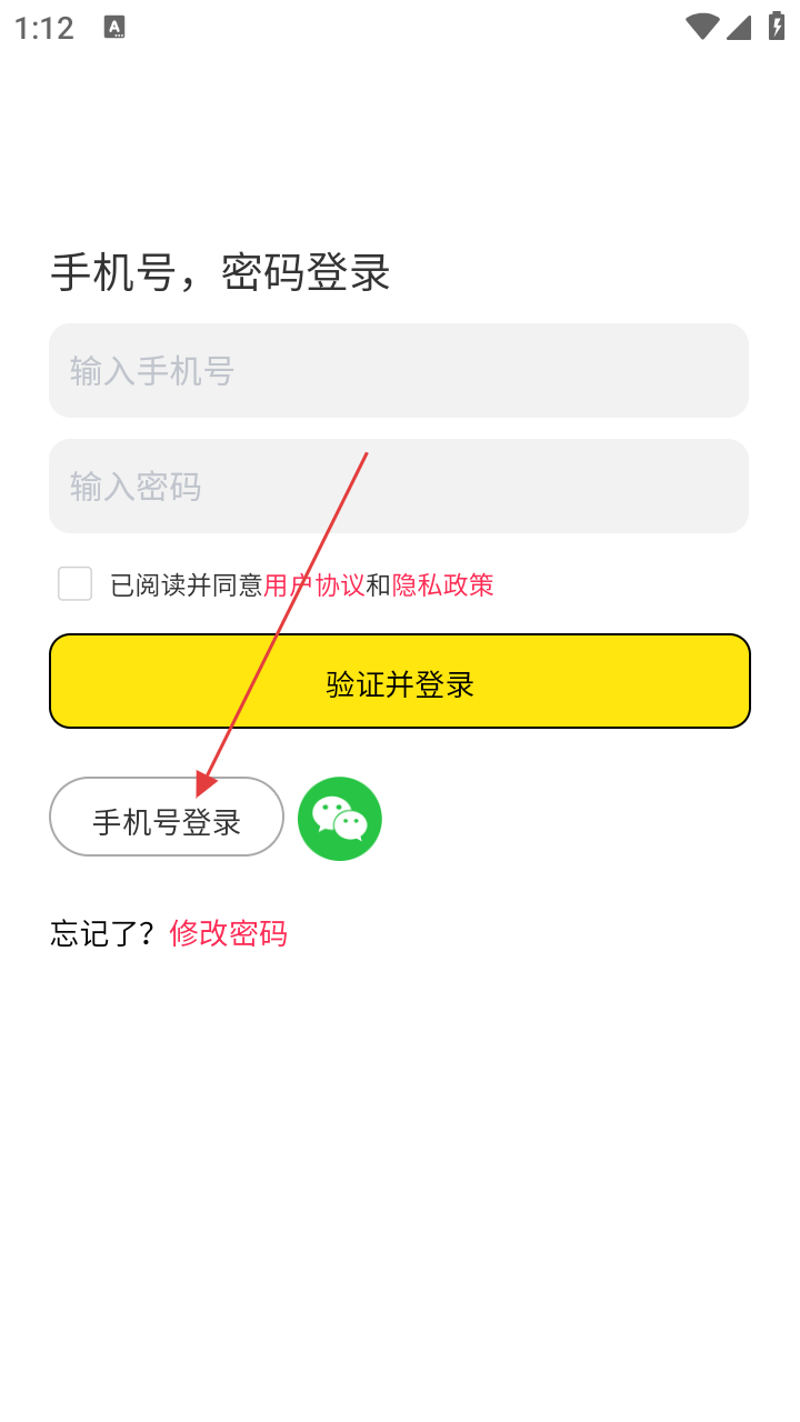 3、进入手机号登录页面,输入手机号码,勾选【已阅读并同意用户协议和隐私政策】。