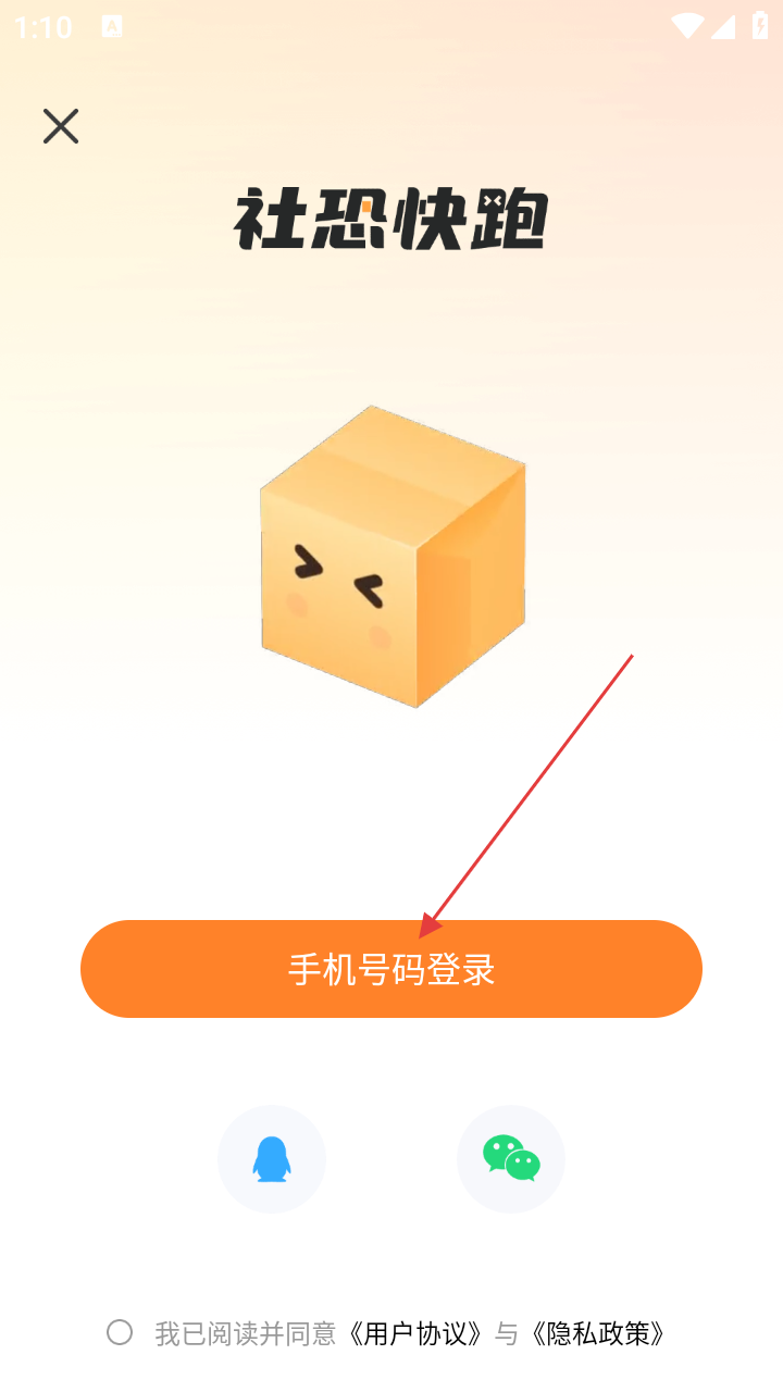 3、在登录界面,选择【手机号码登录】,勾选同意《用户协议》与《隐私政策》后,输入手机号码
