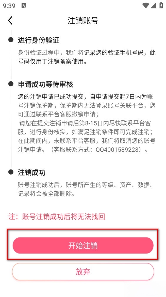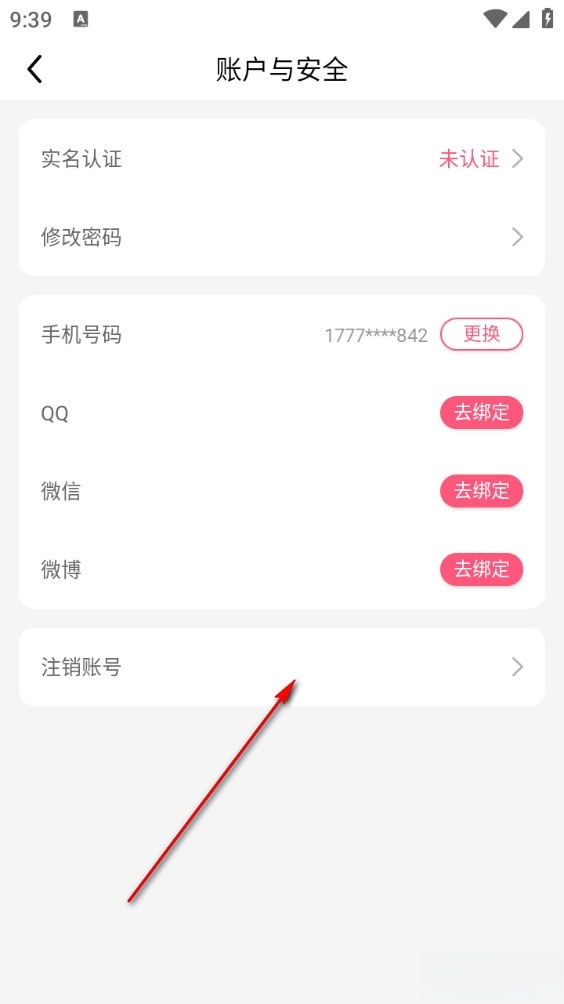 3、再点击注销账号