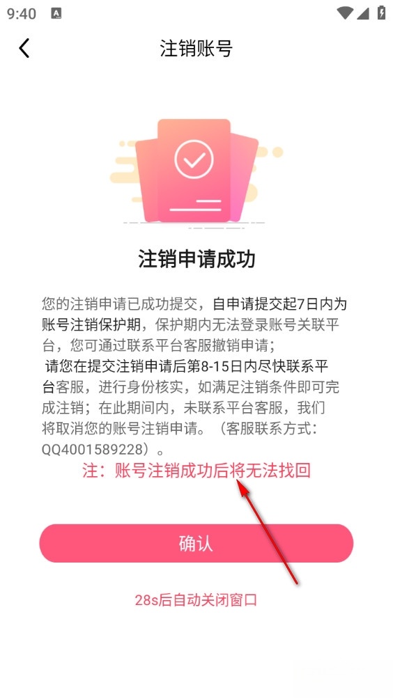 6、输入手机验证码后即可完成注销