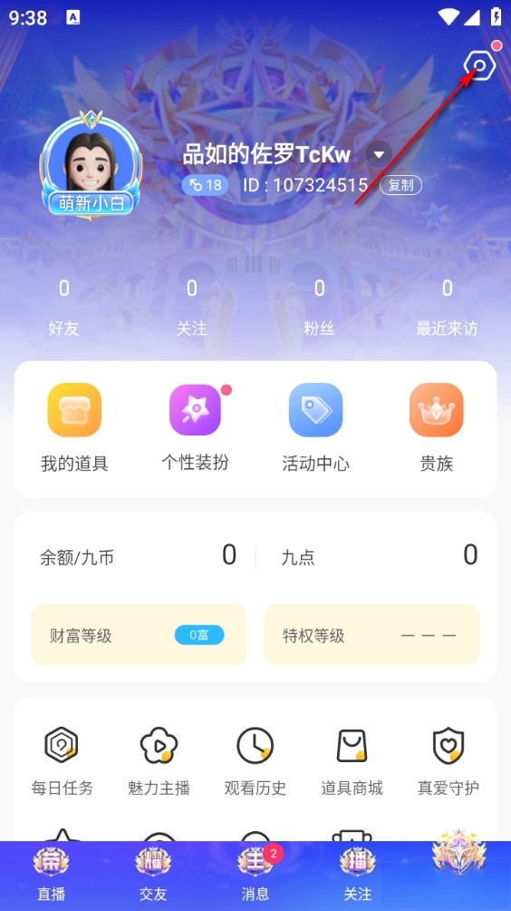 1、进入软件后,点击个人主页右上角的设置按钮。