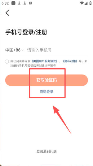 4、在登录页面,点击“获取验证码”按钮进行手机号验证登录。