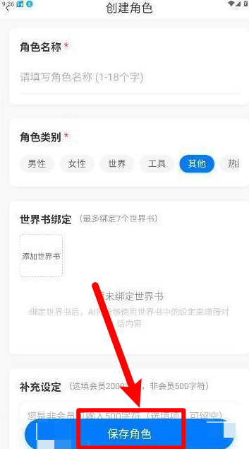 5、最后填写据说名称、选择选择,补充相关信息后,点击底部"保存角色"即可。