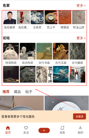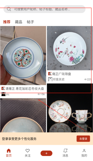 1、打开应用后注册个人账号并完善资料,通过首页推荐或搜索功能探索感兴趣的藏品话题与论坛板块。