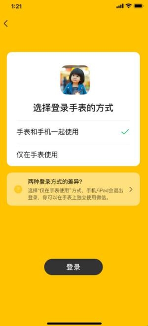 6、选择“仅在手表使用”登录方式
