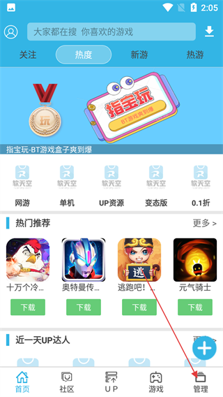 1、在【软天空】首页,点击底部【管理】,进入个人中心页面。