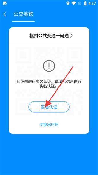 2、在公交地铁页面,系统提示“您还未进行实名认证”,点击【实名认证】按钮进入认证界面。