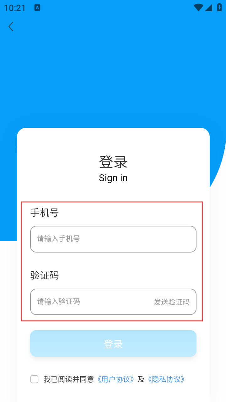 2、点【我的】进登录,填【手机号】点【发送验证码】,输码完成Sign-in。