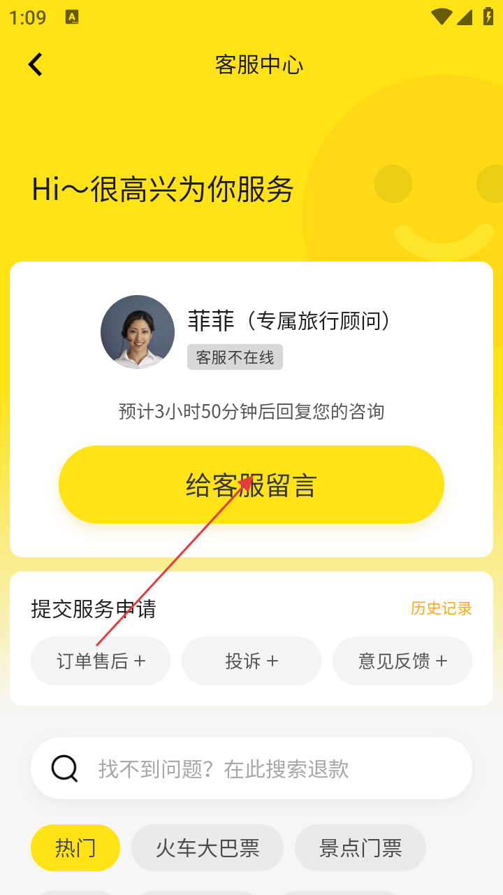 3、在客服中心,若客服不在线,可点击【给客服留言】,也可提交订单售后等服务申请。