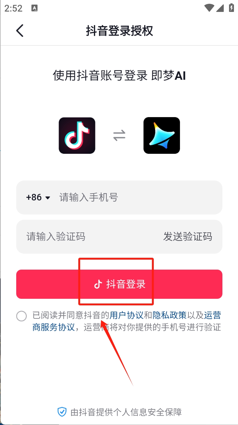 3、输入手机号并获取验证码。点击“抖音登录”完成登录。