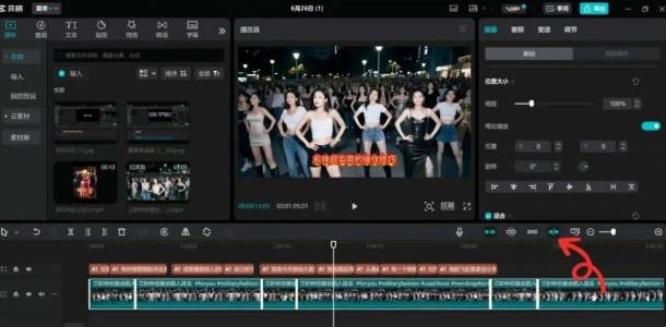 8、音频字幕准备好,开始剪辑视频,将导入的视频放在时间上主轨道上方轨道(前面有“封面”两个字的是主轨道),右键单击视频,选择“智能镜头分割”,视频会自动按镜头切换分成多个小段。