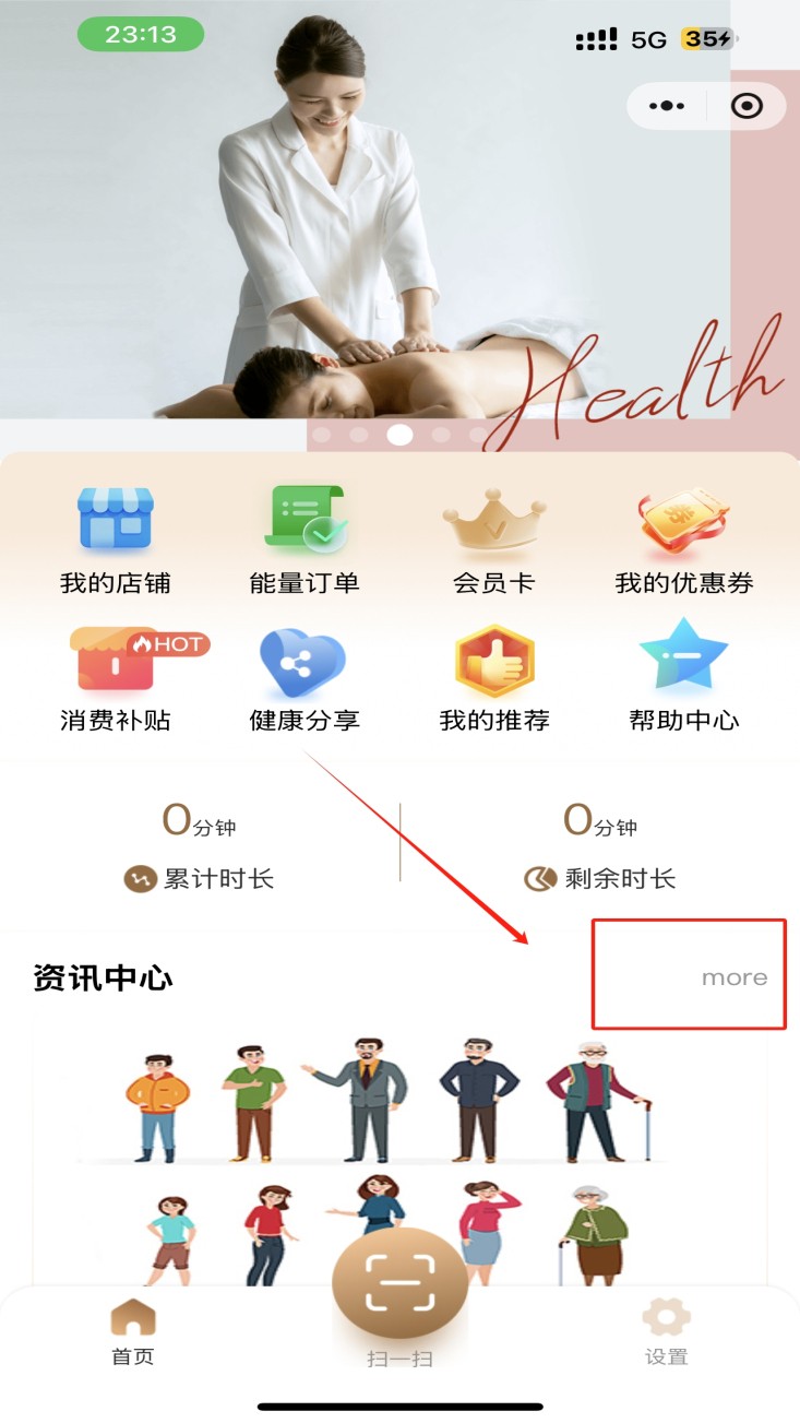 1、在能量疗法首页点开最新资讯中心的更多选项,选择查看更多相关讯息。