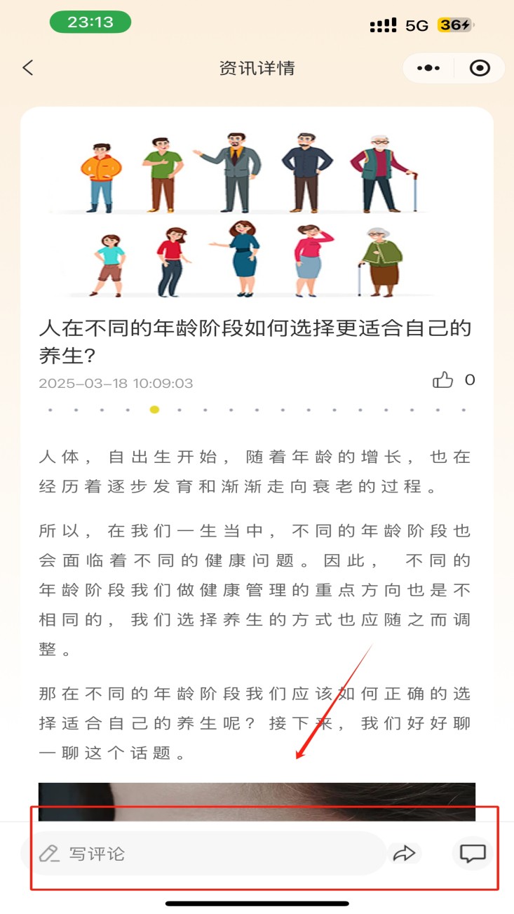 3、在文章详情页面,阅读全文内容。如果对文章有想法或问题,可以点击写评论按钮进行评论。