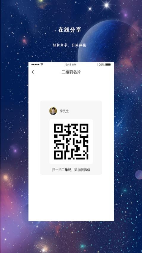 3、使用电子名片:通过"我的名片"功能编辑门店信息,一键分享至微信等社交平台。