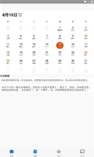 3、除了基本的日期信息外,软件还会呈现农历、节气、节日等详细信息。