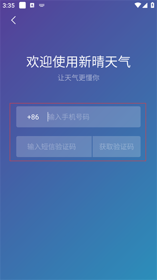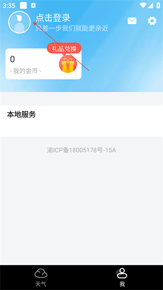 2、在个人中心页,点击【点击登录】区域,进入新晴天气的登录界面。