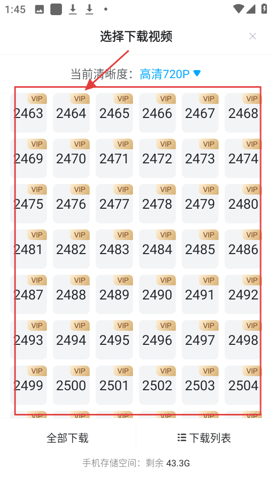 3、在下载选择页面,能看到不同集数选项,选择想下载的集数,即可进行下载操作啦。
