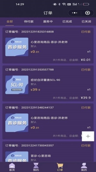 3、可以看到很多的心理咨询订单;