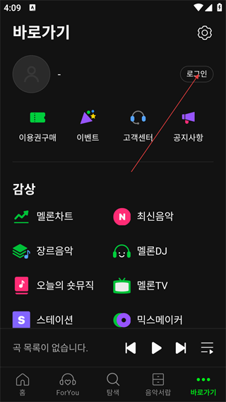 1、进入melon首页,点击【바로가기】进入个人界面。