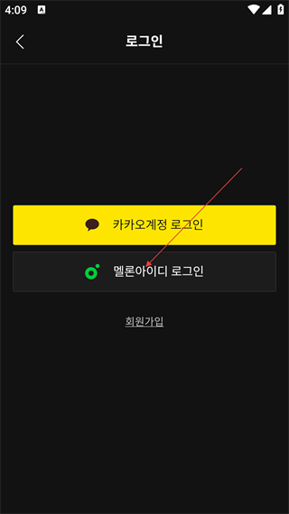 3、点击【로그인】按钮后,可选择【카카오계정-로그인】或【멜론아이디-로그인】,按需选择登录方式。