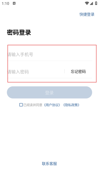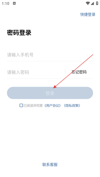 2、进入登录界面输入手机号和密码。