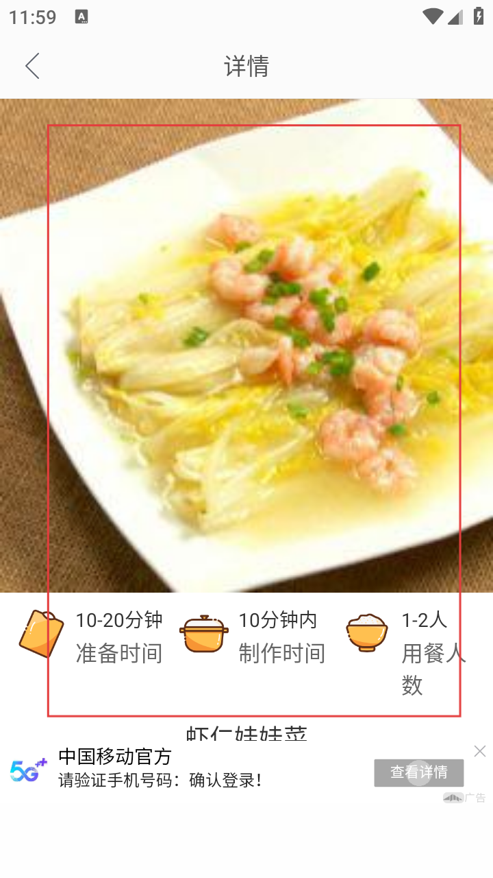 4、进入菜谱详情页,查看菜品图片、制作时间、用餐人数等信息,学习制作。