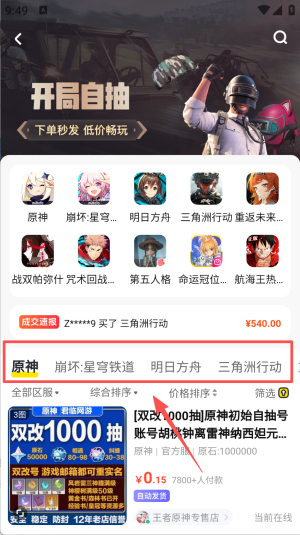 答:在软件中选择游戏分类,查找所需游戏账号。