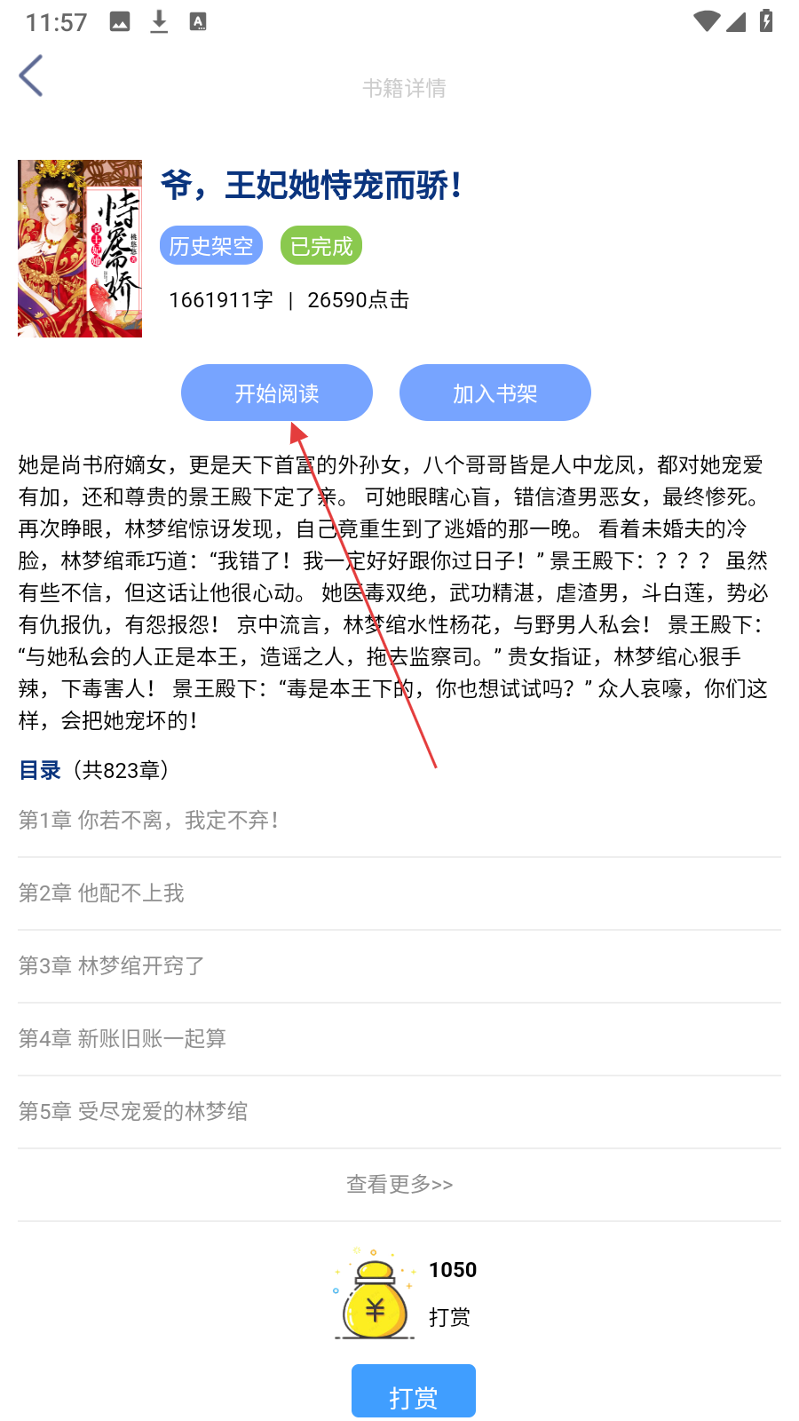 3、进入小说详情页,点击【开始阅读】开启阅读体验。