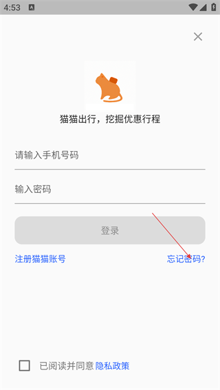 3、在登录页,点击【忘记密码?】选项,进入密码找回页面。