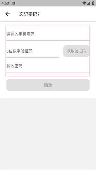 4、在密码找回页,输入注册时绑定的手机号码,点击【获取验证码】并填写收到的验证码,设置新密码后,点击【确定】完成密码重置。