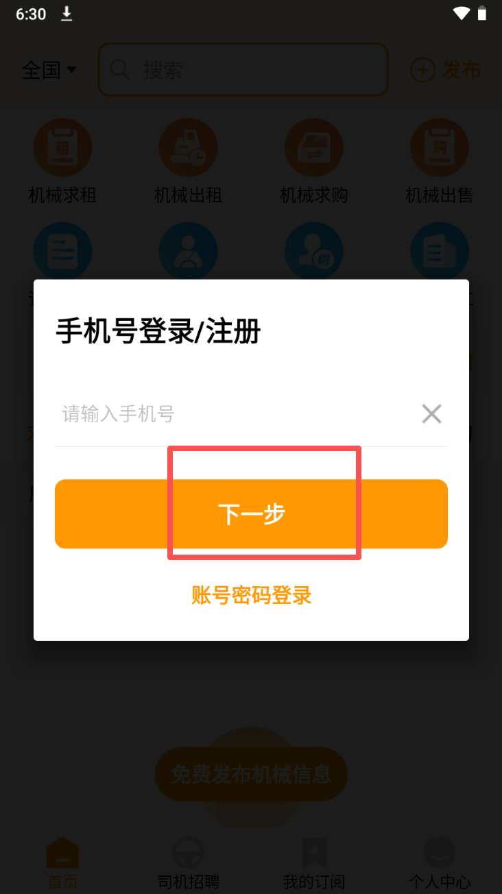 1、输入手机号并点击“下一步”进行注册或登录。