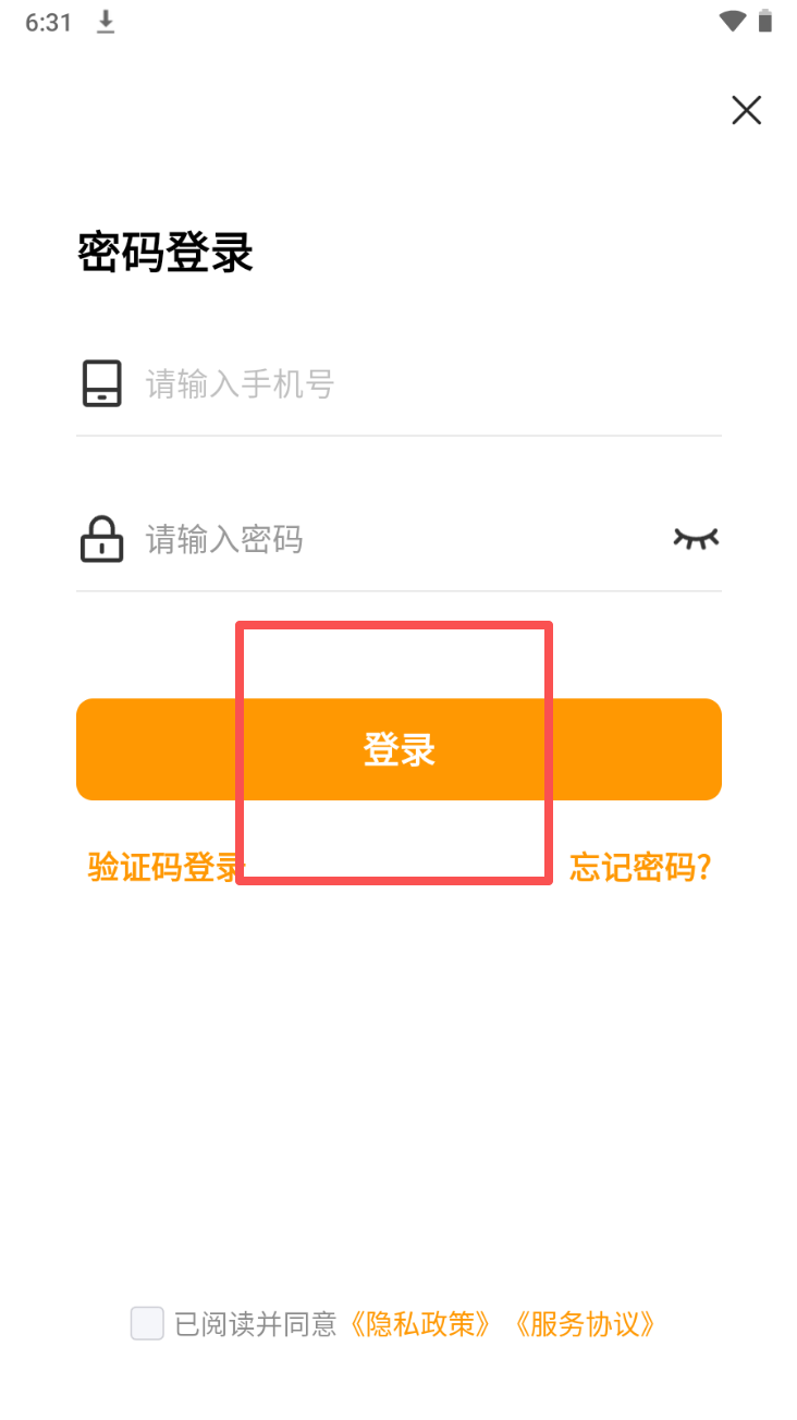 2、输入手机号和密码,点击“登录”按钮完成登录。