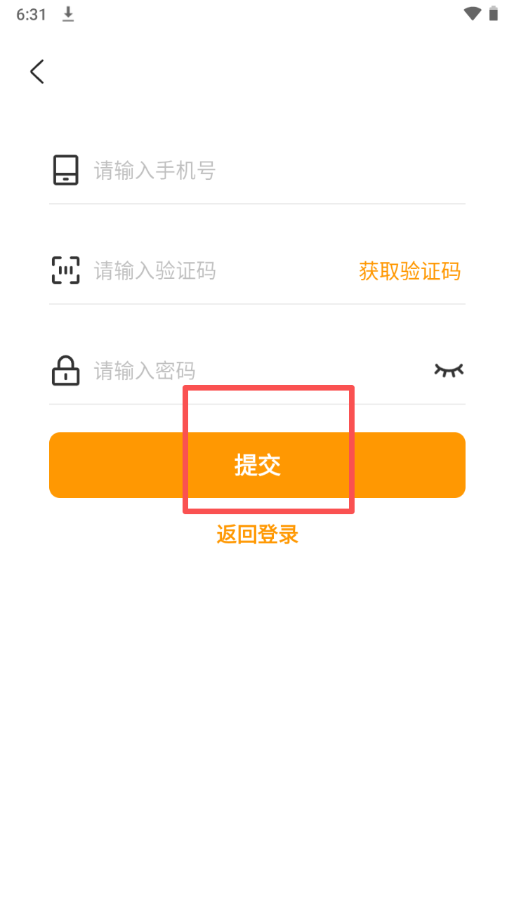 3、输入手机号、验证码和密码,点击“提交”完成注册。