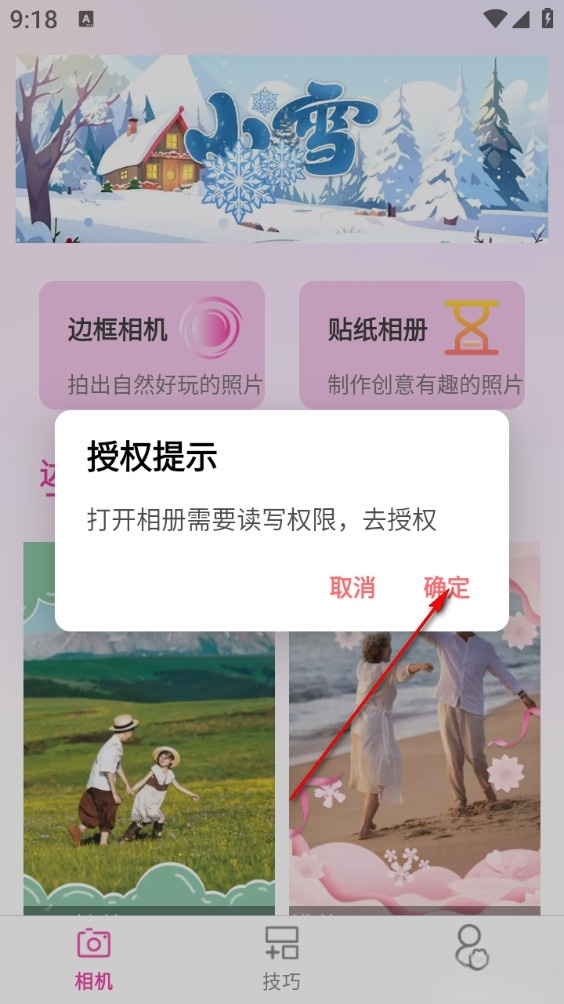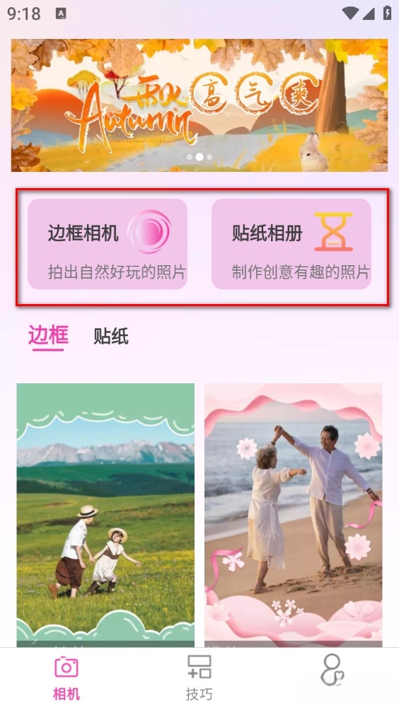 1、进入软件后,选择边框相机功能或者贴纸相册功能。
