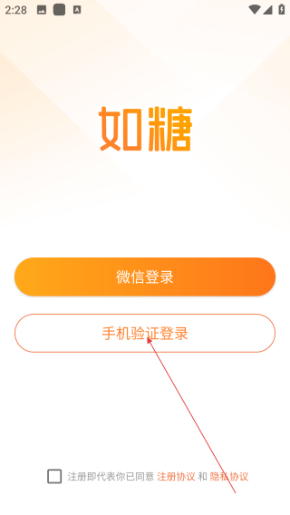 1、启动如糖应用,点击【手机验证登录】选项。