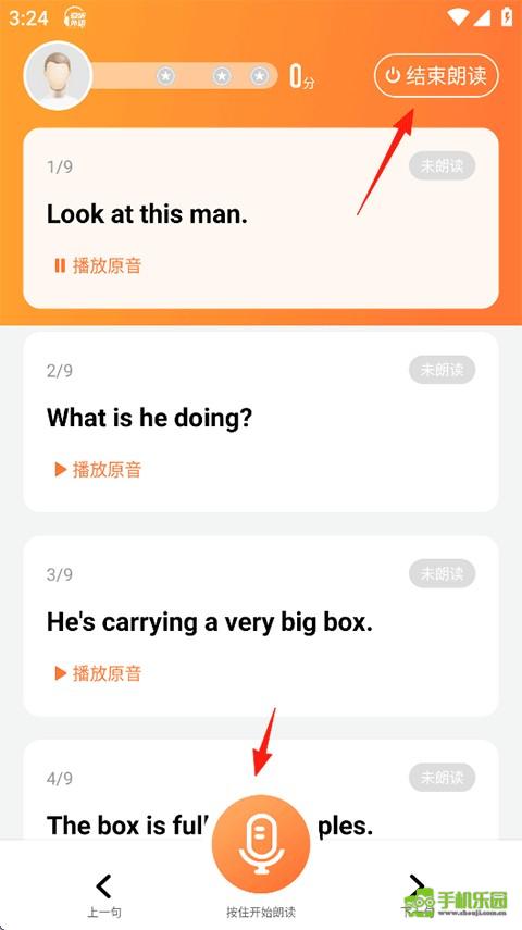 7、按住下方麦克风进行朗读,完成后点击右上角结束朗读;
