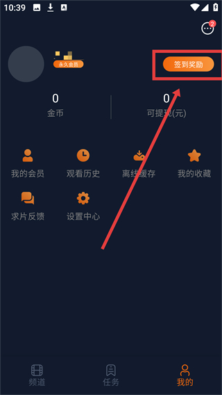 2、进入个人页面后,点击【签到奖励】,可进入任务中心页面哦。