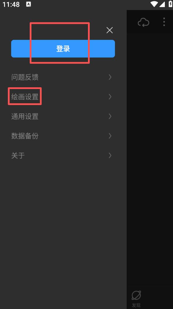 1、软件启动后,登录个人账号,设置好个性化绘画设置。