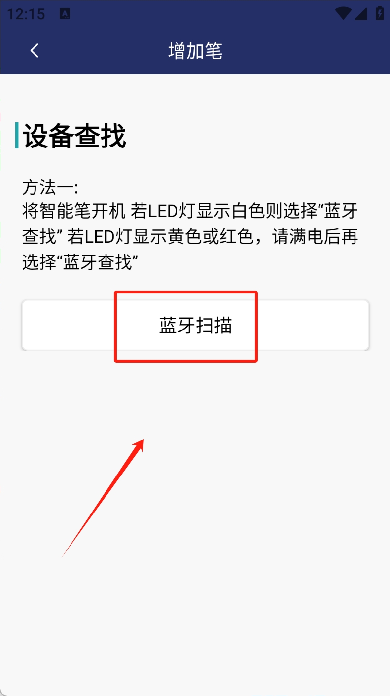 2、选择蓝牙扫描:点击“蓝牙扫描”查找并连接智能笔。