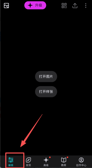 2、点击打开图片选择样张或本地照片进入编辑页面开始修图。