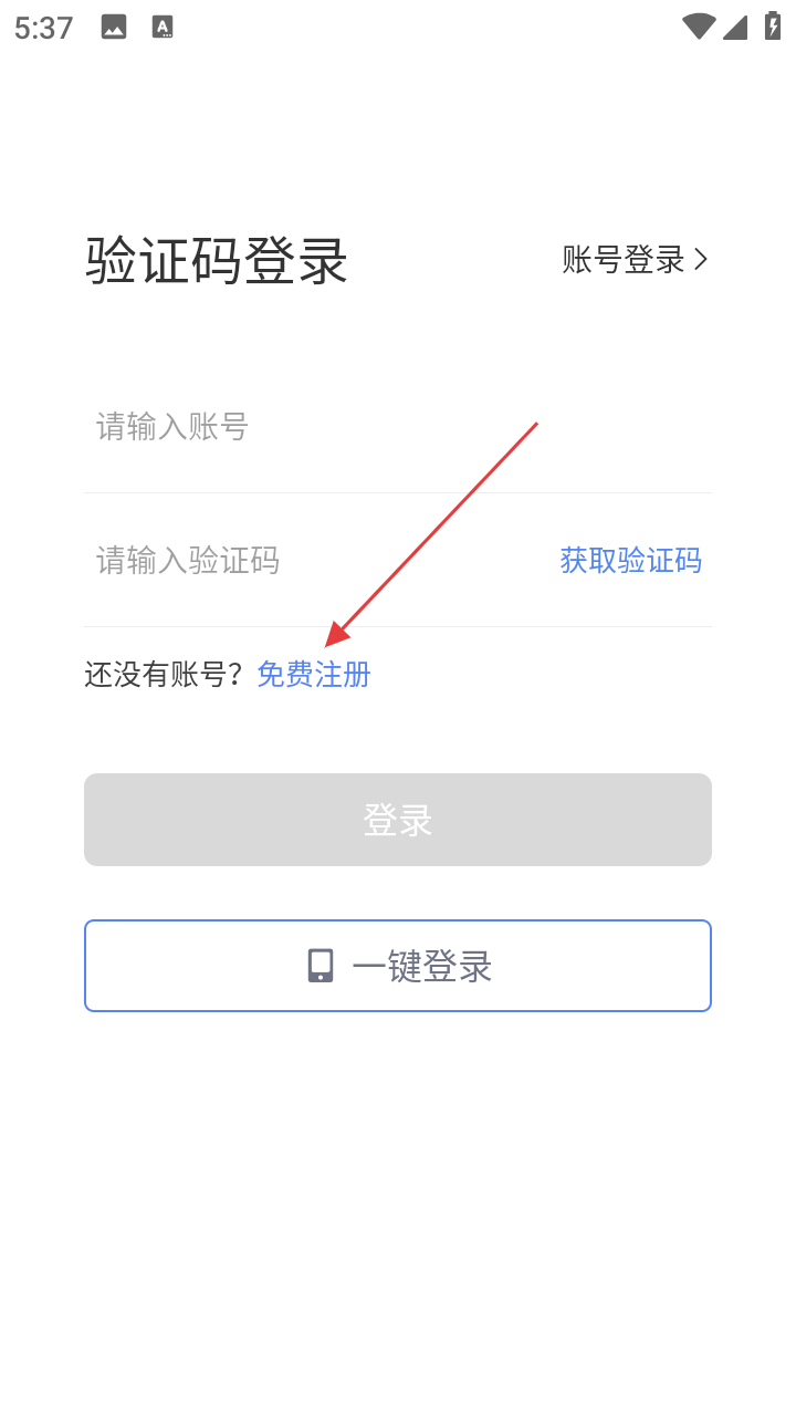 2、在登录界面,无账号点击【免费注册】,进入注册环节。