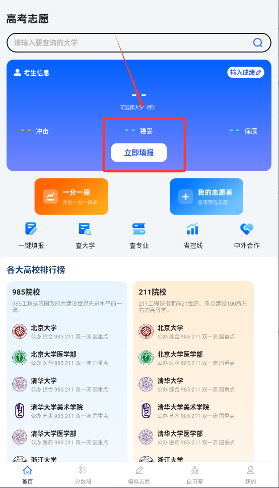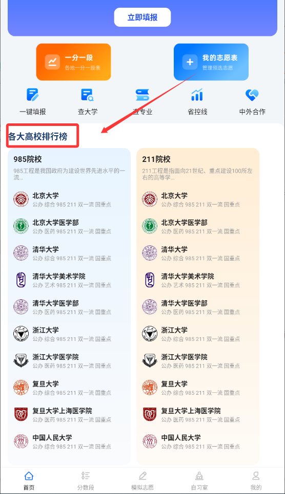 2、录取概率预测功能基于大数据分析,实时显示每个志愿的预估录取可能性。