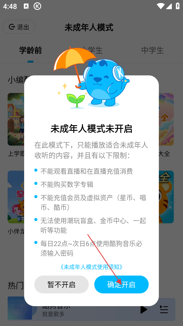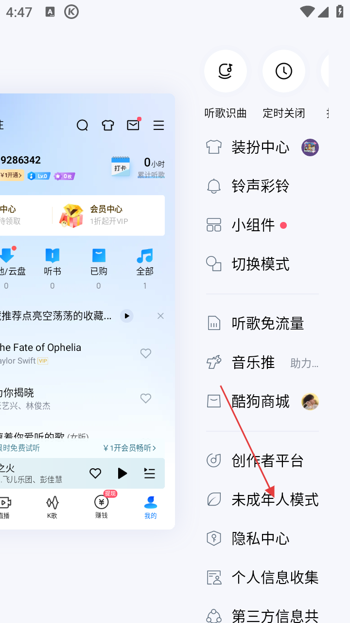 酷狗音乐怎么开启未成年模式