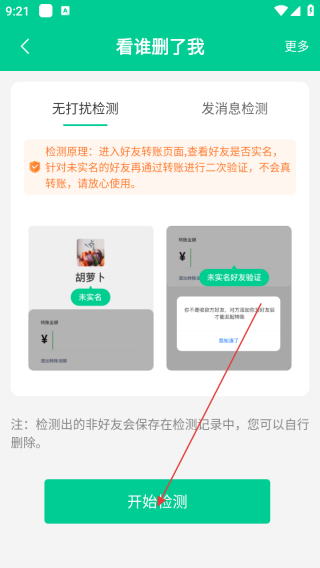 2、进入页面后点击开始检测。