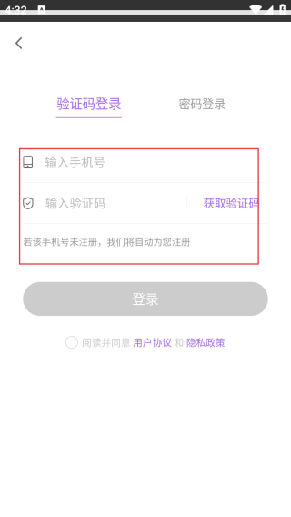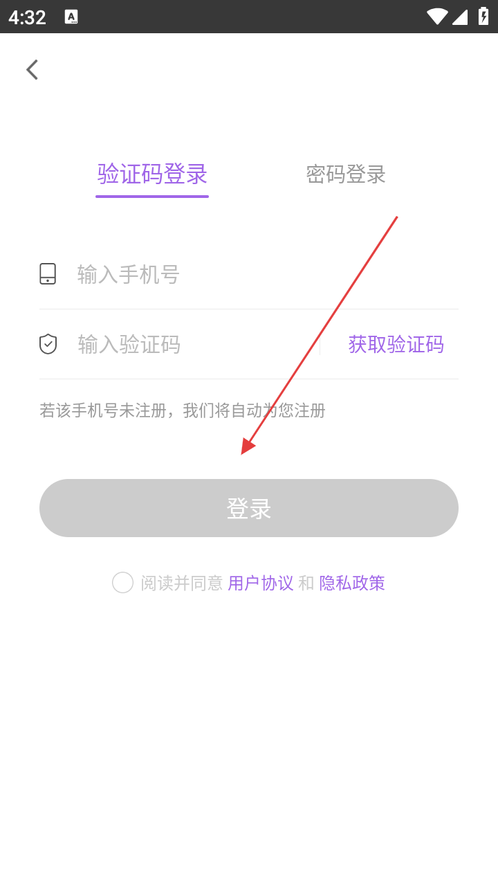 2、进入登录页输入手机号和验证码。